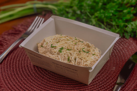 Fricassê de Frango c/ Arroz de Brócolis e Cebola Caramelizada