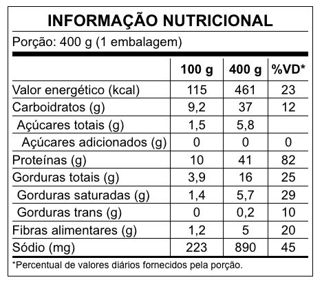 Para oferecer sempre a melhor qualidade, nossas receitas podem passar por ajustes. Recomendamos verificar as informações nas embalagens.
