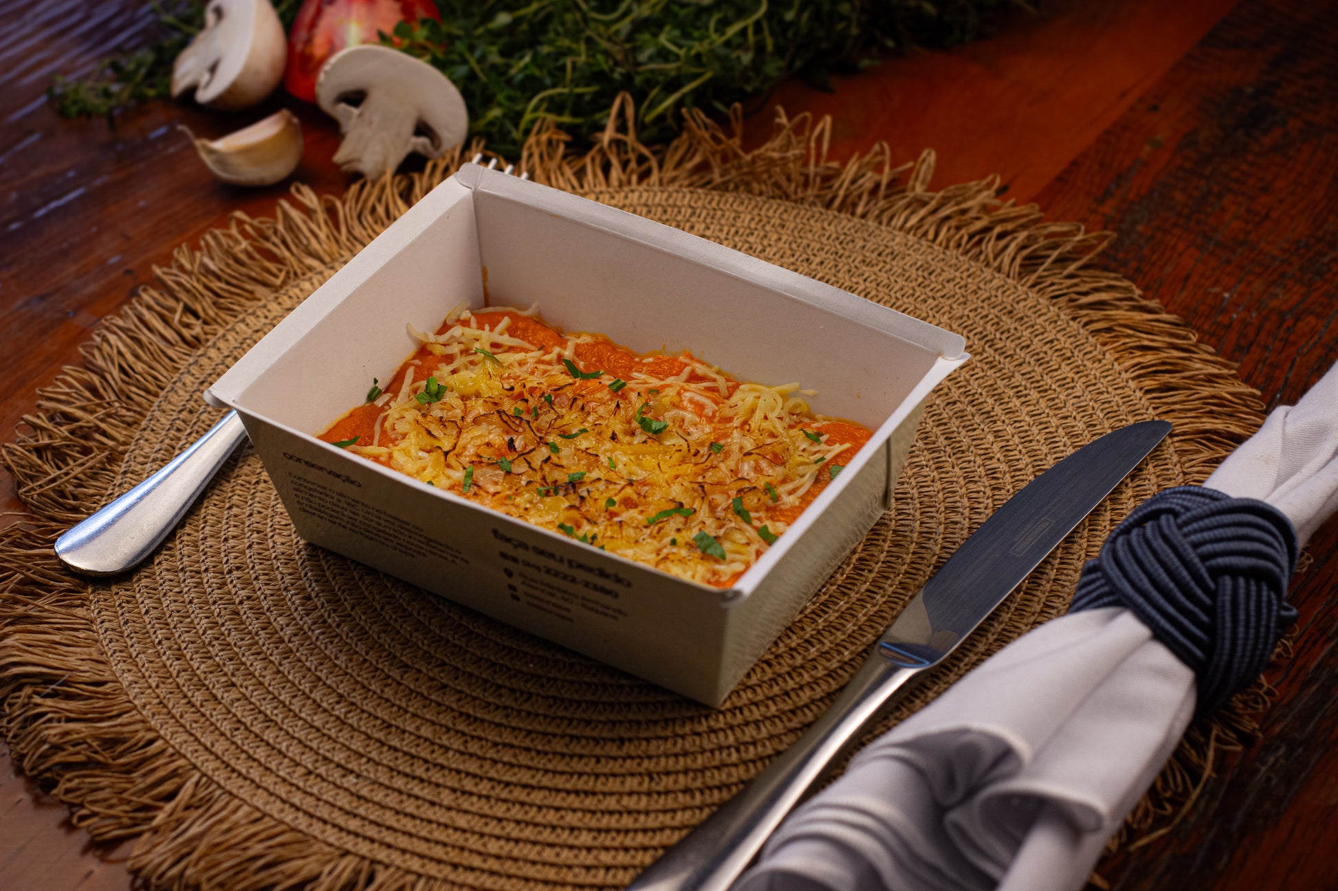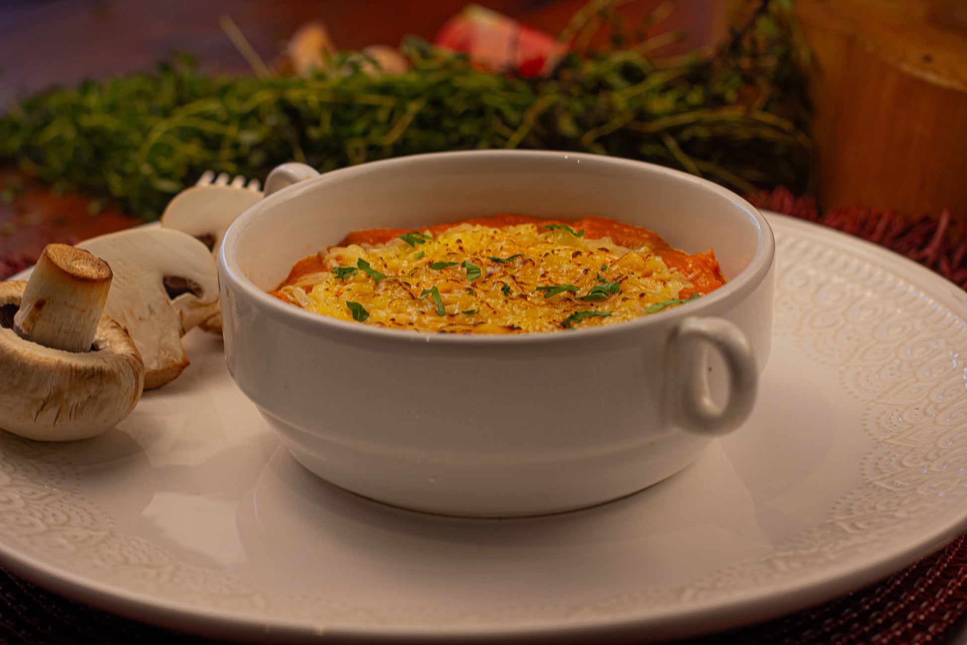Escondidinho Cremoso de Abóbora c/ Cogumelos Paris Salteados