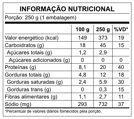Para oferecer sempre a melhor qualidade, nossas receitas podem passar por ajustes. Recomendamos verificar as informações nas embalagens.