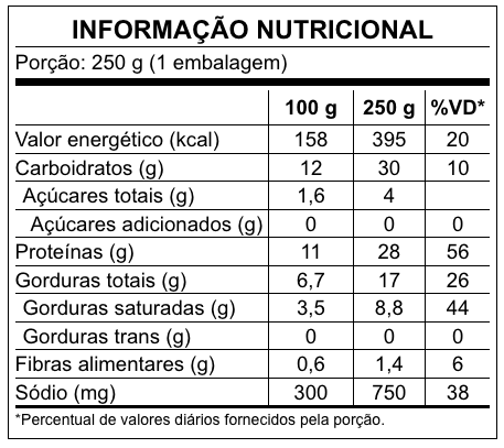 Para oferecer sempre a melhor qualidade, nossas receitas podem passar por ajustes. Recomendamos verificar as informações nas embalagens.