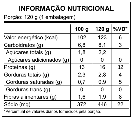 Para oferecer sempre a melhor qualidade, nossas receitas podem passar por ajustes. Recomendamos verificar as informações nas embalagens.